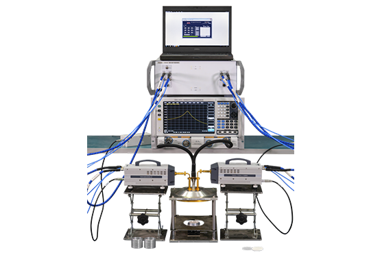 測試采用(yòng)圓柱(zhù)微擾諧振腔測試夾具,諧振腔測試為(wéi)單點頻測試,測試樣品為長條形圓柱或矩形(xíng)條,根據用戶需求可定製測試頻點。