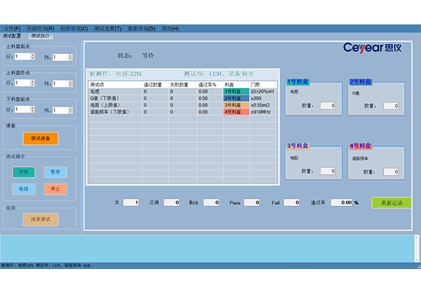 物料(liào)自動(dòng)流轉過程中機械臂自動從上料盤夾(吸)取被測器件,並在軟件的調度(dù)下依次完成各類型參數自(zì)動(dòng)測試,測試合格品放入合格料盤(pán)(或編帶),不合(hé)格品分類放(fàng)入到NG料盒中。整個過程全自動執行,無需人工(gōng)參與(yǔ),所有器件測試完成後會有燈光提(tí)示。