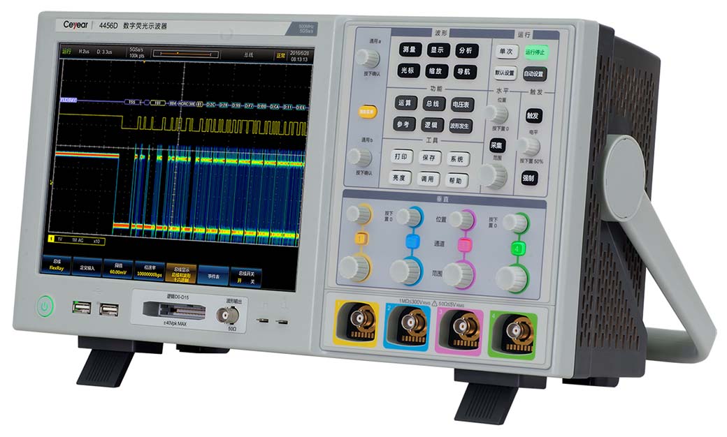 4456係列數字熒光示波器集數字示波器、邏輯分析儀、函數發生器、總線分析儀、數字電壓(yā)表五(wǔ)種儀器於一體,具有波形自動設置(zhì)、波形(xíng)參數自動測量與統計、光標測量、直方圖測量、數學運算、FFT分析、串行總線觸發與分析(xī)、極限與模板測試、功率(lǜ)測量與分析、波(bō)形錄製與回放、模數混合信號分析、任意函數發生等(děng)功能,支持以太網程控,方便您(nín)集成開發使用。