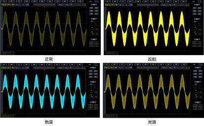 4457係列示波器采用數字熒光三維(wéi)顯示技術,通過顏色的亮暗或冷暖來表示事件發生的概率,並提供(gòng)正常、反相、色溫、光譜等(děng)4種波形色彩,增強了查看偶發事件的能力(lì)。