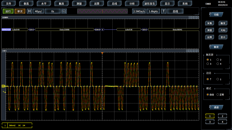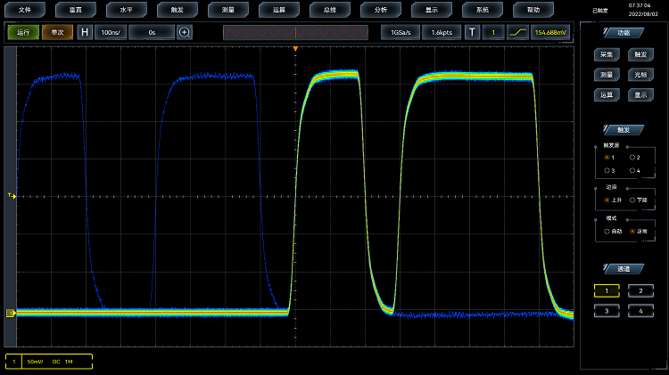示波器高達120萬個波形/秒的波形捕獲率,20GSa/s的采樣率,極大提高了毛刺和偶(ǒu)發事件捕獲的概率(lǜ),讓您在更長的采集時間內查看到更多的波(bō)形(xíng)細節。
