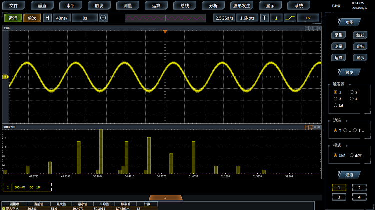4457係列示波器采用精確的數字(zì)觸發技術,直接對ADC采集樣本進行觸發點測定,能抑製幹擾信號影響,迅速鎖定觸發事件,為(wéi)示波器準確(què)的顯示和(hé)分析信號(hào)奠定基(jī)礎。數字(zì)觸發的觸發靈敏度最高0.1格。