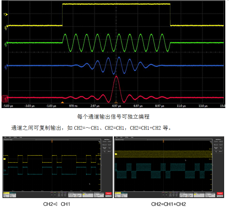 支持用戶自定義輸出波(bō)形的幅值、頻(pín)率、相位、通道間相對延(yán)時以(yǐ)及其他特征參數。