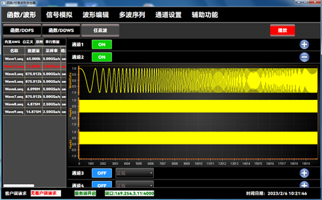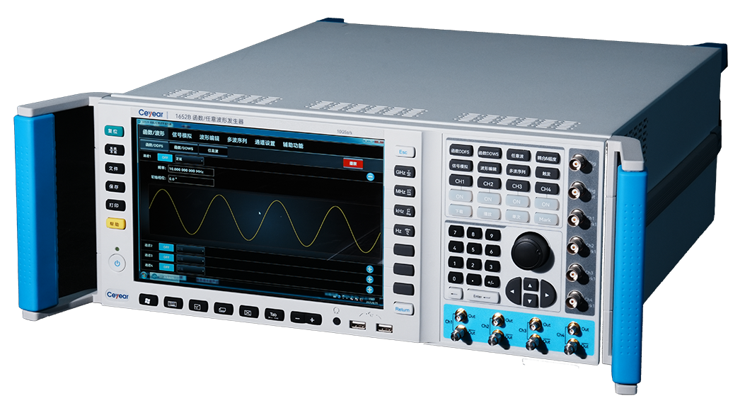 1652B函數/任意波形發生器采樣率5GSa/s(插值到10GSa/s),垂直分辨率16bits,最(zuì)高輸出頻率4GHz,雙通道、四通道可選,存(cún)儲深(shēn)度2G點/通道。可以實(shí)現常規函數波形產生(shēng)、可編(biān)輯任意波形發生、環境信號模擬發生、I/Q矢量基帶信號產生等,內置任意波形編輯軟件功能,支持定時(shí)播放、外觸發(fā)播放、循環播放等多種播放方式,每次播放的次數可(kě)自定(dìng)義,並支(zhī)持通道間同步、多台(tái)儀器間(jiān)的同步等。主要用於通信、導航等設(shè)備以及半導體芯片的測(cè)試與(yǔ)試驗,亦可為相關電子(zǐ)設備的調試提供(gòng)函數激勵信號。