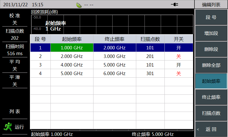支(zhī)持列表掃描功(gōng)能,同時測量多(duō)個頻段,每個掃描(miáo)段可設置不同的點(diǎn)數、頻率(lǜ)範圍。列表編輯方便快捷,可直接點(diǎn)擊待編輯參數,每個段可通過開(kāi)關設置打開或關閉。