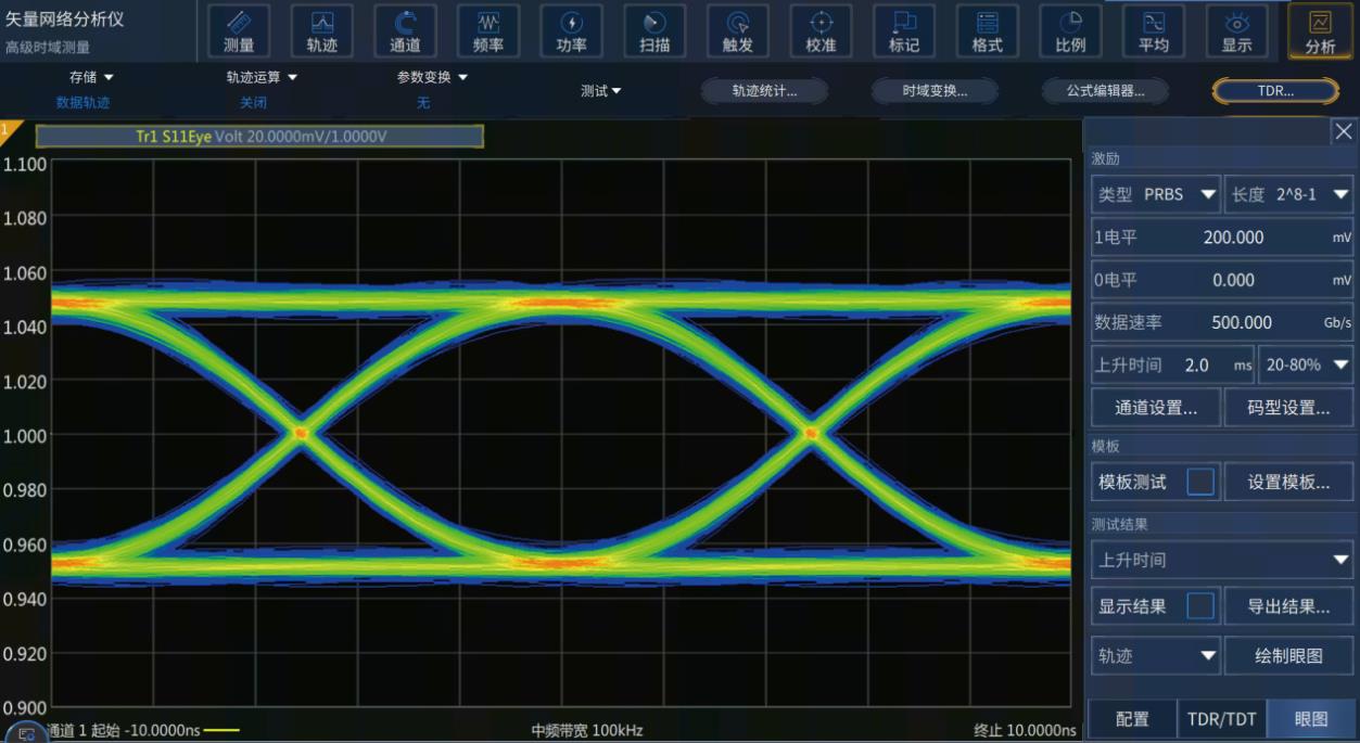 高級時域分析選件具備基於網絡參數的虛擬(nǐ)眼圖生成及分析功能。根據不同的(de)高速數字(zì)通信標準,高級時域分析選件可以使用預(yù)先定義好的眼圖模板進行高效(xiào)率Pass/Fail測試。