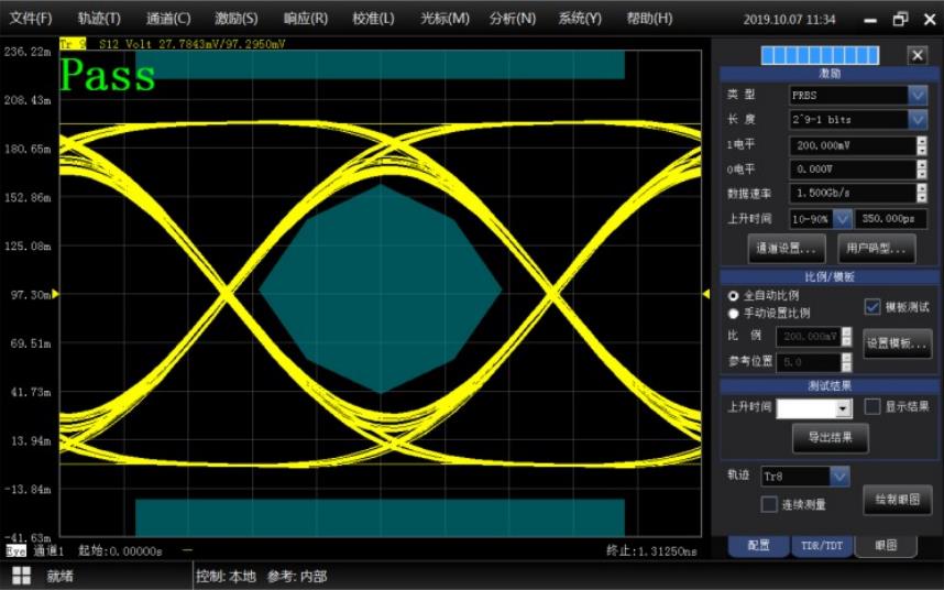 3671係列(liè)矢網的高級時域分(fèn)析選件提供基於S參數的虛擬眼圖生成及分析功能。仿真碼型輸出單元用於產生0、1變化的數據(jù)位,把仿真碼型(xíng)和被測件的時域衝激響應進行(háng)卷積,疊加後得到虛擬眼圖。