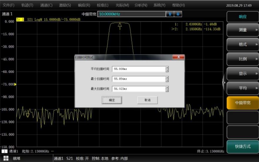 3671係列矢量網絡(luò)分析儀在全頻段201點掃描、600kHz中頻帶寬情況下掃描(miáo)速度可達43ms(典型值),並提供一鍵式掃描時間測試功能,方便評估。