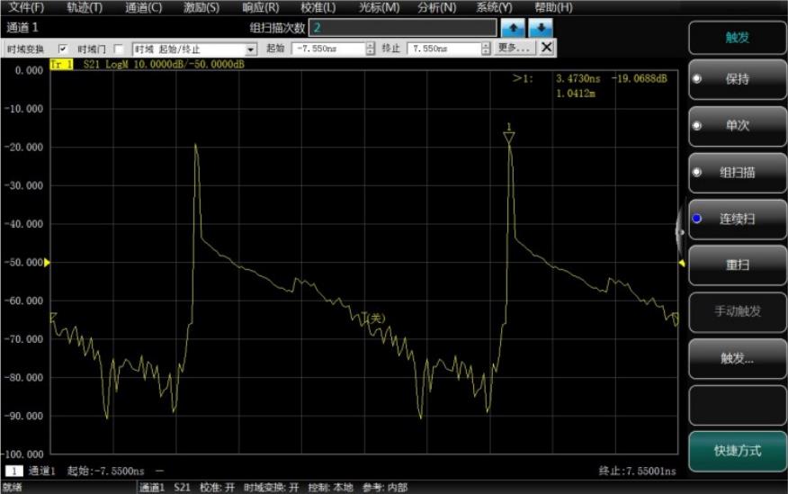 3671係列矢量網絡分析儀可通過配置時域測量選件實現測量結果頻(pín)域和時域之間的切換(huàn),用以(yǐ)確(què)定器(qì)件、夾具或者電纜中(zhōng)的不連續點位置,實現故障點精確定位。
