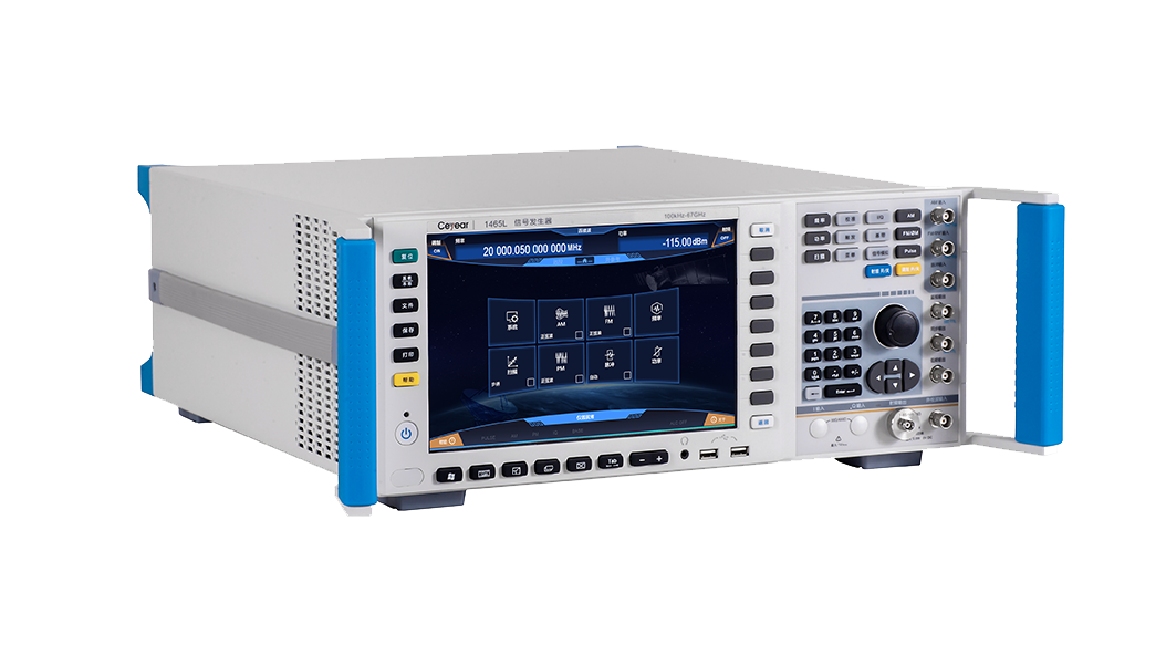 1465係列信號發生器頻率範圍覆蓋100kHz~67GHz,具有卓越的頻譜純度和(hé)輸出功率指(zhǐ)標,單邊帶相位(wèi)噪聲10GHz載波(bō)@10kHz頻偏-126dBc/Hz,最大(dà)輸出功率可達1W@20GHz,輸出功率動態範圍大於150dB,可(kě)滿足對測試信號的高端需求;具有高精度模擬掃描功能、性能(néng)優異的模擬調製和脈衝調製功能,內部調製信號發生器頻率(lǜ)高(gāo)達10MHz,信號波形多樣,脈衝調製最小脈寬20ns並能產生靈活的(de)脈衝串(chuàn),能夠滿足對模擬調製和脈衝調製的各種測試需求;具有10.1吋大顯示屏、1280×800像(xiàng)素(sù)高分辨率,並支持按鍵、鼠標、觸(chù)摸屏等多種操作方式,提升(shēng)操作體驗的(de)同時可以(yǐ)提高(gāo)測(cè)試效率。1465無論是連續波還是調製信(xìn)號,信號質量優異,既是理想的本振源和時鍾源,也是高性能的模擬仿真信號(hào)源,主要用於高性能接收(shōu)機測(cè)試和元器件參數(shù)測試等方(fāng)麵(miàn),適用(yòng)於通信、導航設備等眾多領域。