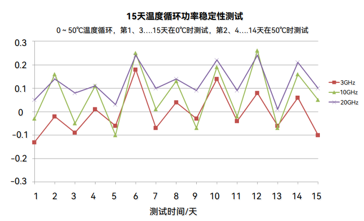輸出信號的頻率(lǜ)、功率都具有(yǒu)非常高的穩定性。時基老化率±5×10-8/年,10MHz高穩時基一年變化不到0.5Hz。不(bú)僅具有優異的輸出功率準確度,功率穩定度也非常出色,在0℃到50℃溫度循環的環境(jìng)中連續開機15天,相同溫度下功率變(biàn)化小於0.2dB,功率溫度變化率小於0.01dB/℃。