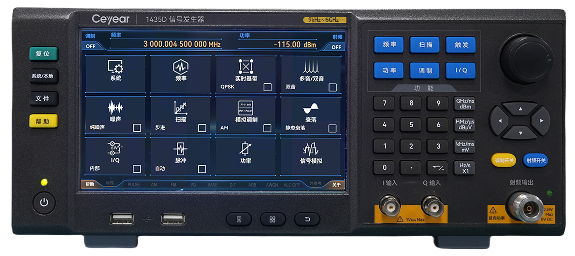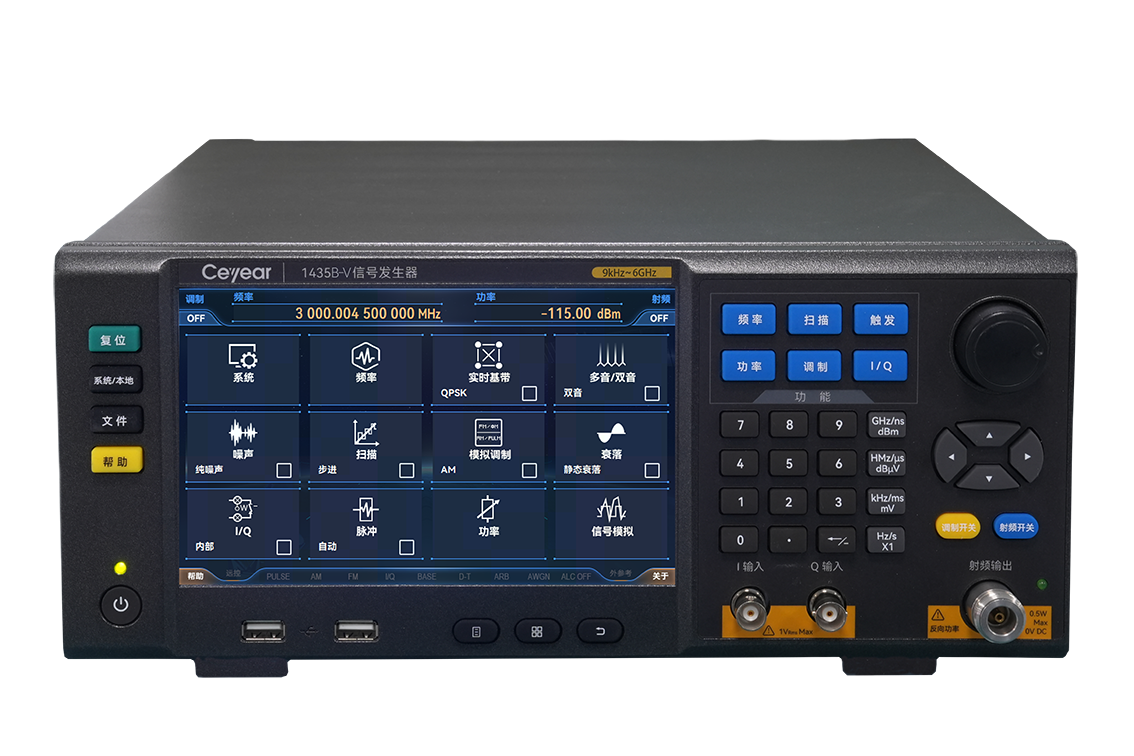 1435-V係列信號發生器是一款性能優良的矢量信(xìn)號發生器,頻率範圍覆蓋9kHz~6GHz,200MHz內部調製帶寬和齊(qí)全的數字調製樣式(shì),可(kě)滿足各種寬(kuān)帶數字(zì)調製信號的模擬(nǐ)需求。支持5種下載數據格式的任意波調製,可以根據(jù)用戶需要編(biān)輯、下載配置所需的波形,完成各種信號模擬,滿(mǎn)足(zú)各種複雜信(xìn)號的(de)測試需求;其(qí)基帶信號發生器設(shè)置簡單、性能優異,支持PSK、QAM、FSK、MSK等超過20種格式的通用數字調製信號的實時發生;具有優良的頻譜純度,單邊帶相位噪聲1GHz載波@10kHz頻偏-136dBc/Hz ,6GHz載波@10kHz頻偏-120dBc/Hz;具有高(gāo)功率輸出和大動態範圍,最大輸出功率可達22dBm@3GHz,輸出功率動態(tài)範圍(wéi)大於150dB;具有7寸(cùn)高靈敏度觸摸LED屏、同時支持觸摸屏、麵(miàn)板按鍵、旋轉按鈕、外接鼠標鍵盤等多種操作方式,操作體驗全麵升級;3U便攜式機箱結構,體積小重量輕,便於攜帶。1435-V在緊湊的空間內實(shí)現優異的性能,既可以滿足設備研發階段對高性能測試需求,也可以滿足生產階(jiē)段對高效率測(cè)試需求(qiú)。