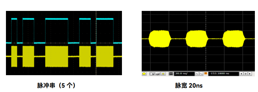脈衝(chōng)開關比大(dà)於80dB,上升下降時間小(xiǎo)於10ns,選用窄脈(mò)衝選件H04,最小脈寬20ns,脈寬範圍20ns~42s-10ns,步(bù)進10ns,支持門控、外部等多種觸發方式,具備測試所需要的脈衝串功(gōng)能。