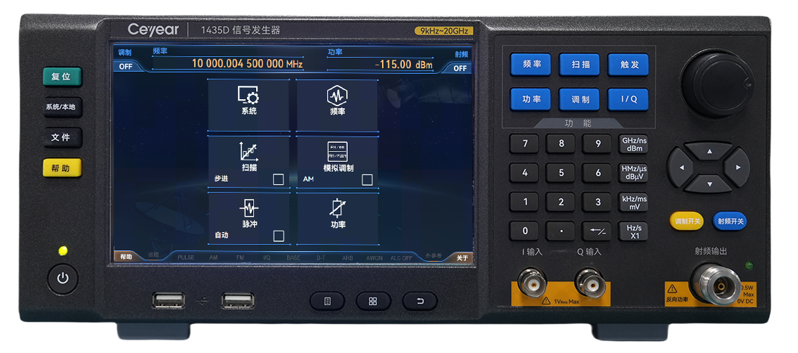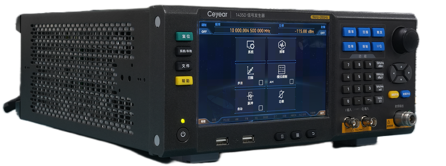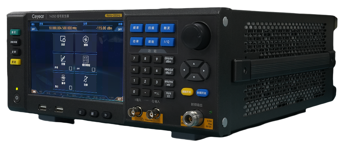 1435係列信號發生器基於創新的技術(shù)實現了性能、經濟性和體積重量的平(píng)衡設計。具(jù)有優良的頻譜純度,單邊帶相位噪聲1GHz載波@10kHz頻偏(piān)達到-136dBc/Hz,10GHz載波@10kHz頻偏達(dá)到-116dBc/Hz;具有高功率輸出和大動態範圍,最大輸出功率可達(dá)20dBm@20GHz,動態範圍大於(yú)150dB;可實現快速頻(pín)率切換,頻率切換時間1ms,縮短測試(shì)時間提高測試效率,滿足海(hǎi)量數據測試需求;具有性能優異的模擬調(diào)製、脈衝(chōng)調製功能(néng)。采用先進的頻率合成和射頻通道(dào)信號處理技(jì)術,獲得高性能的同時降低了成(chéng)本。具有7寸高靈(líng)敏度觸(chù)摸LED屏,同時支持觸摸屏、麵板按鍵、旋轉按鈕、外接鼠標鍵盤等多種操作方(fāng)式,操作體驗全麵升級。3U便攜式機箱結構,體積小重量輕,便(biàn)於攜帶。1435係列信號發生器既可以滿足研發階段對性能(néng)測試(shì)的需求,也可以滿足生產階段對高(gāo)效率測試的需求(qiú)。