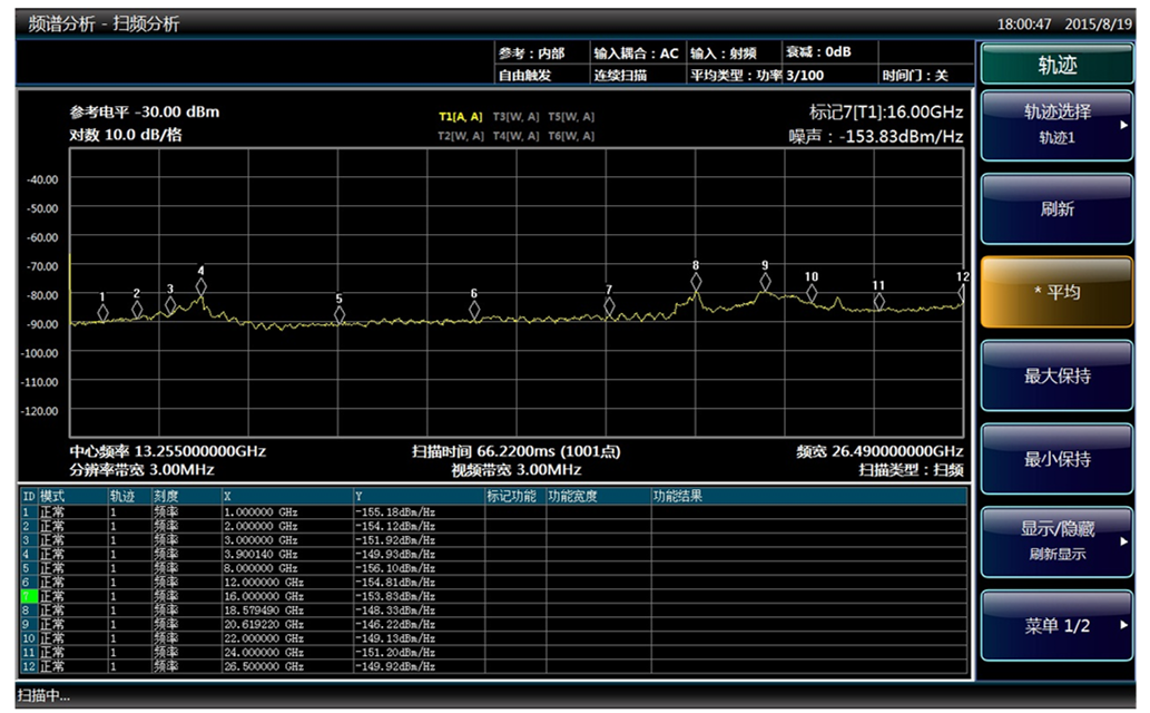 26.5GHz顯示平均噪聲電平-141dBm/Hz,配置前放後典型(xíng)值為(wéi)-160dBm/Hz
