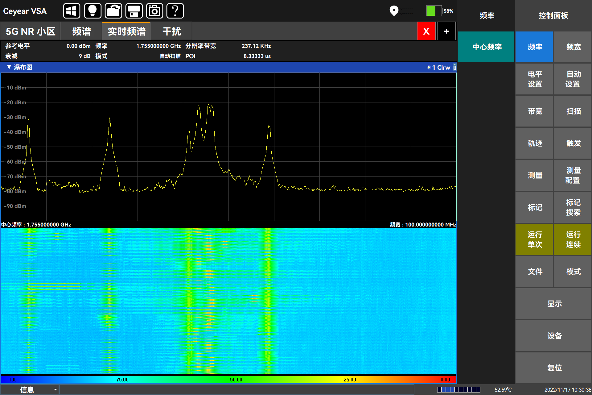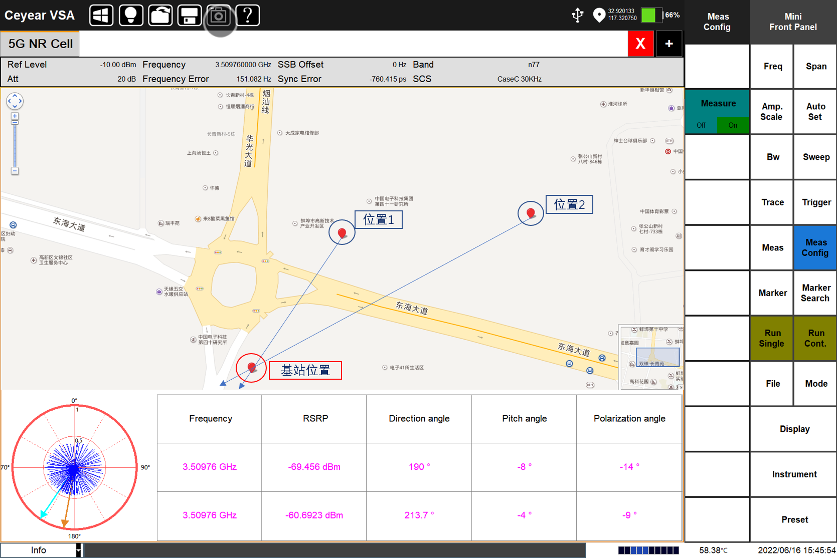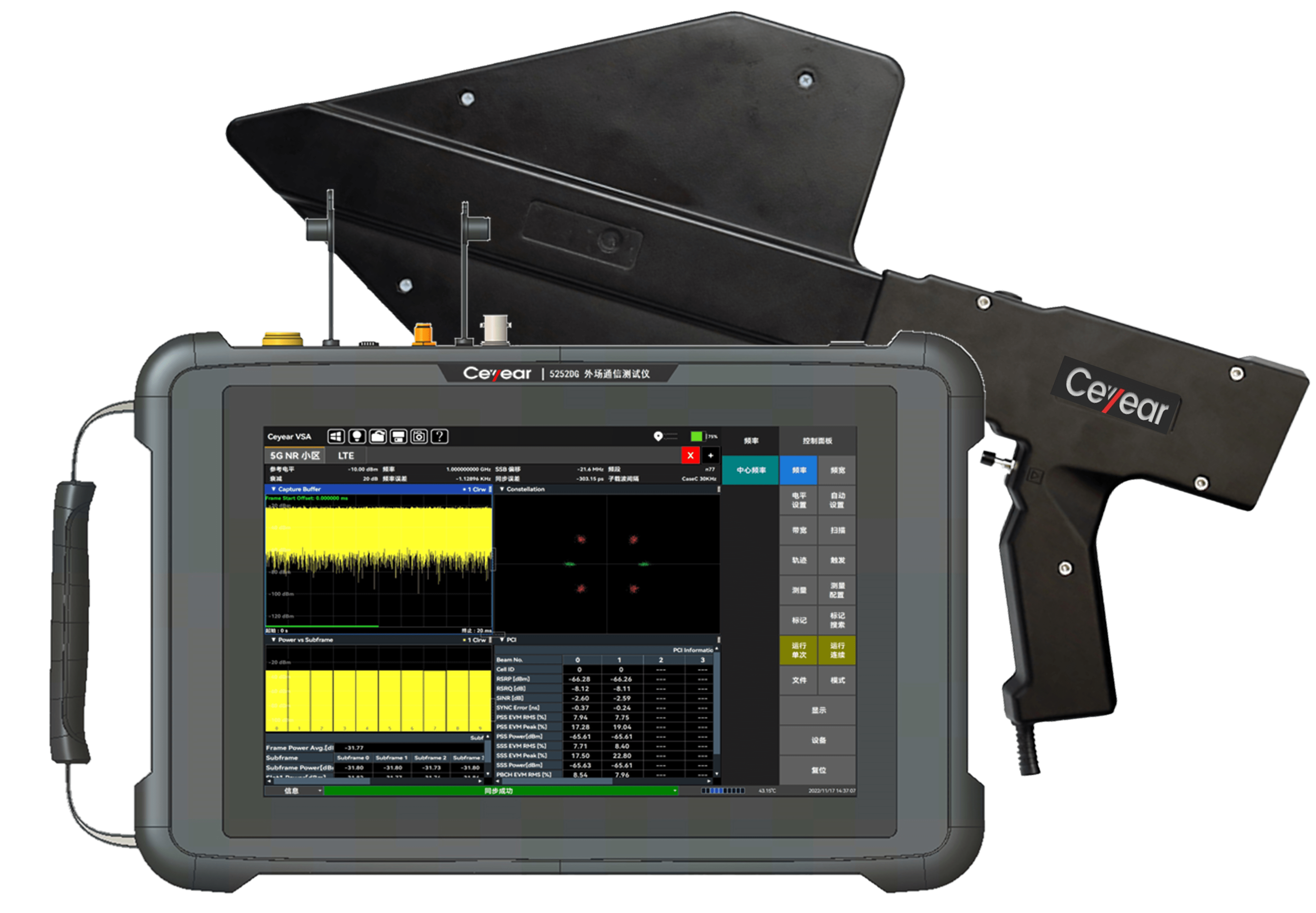Ceyear 5252DG外場通信測試儀(yí)在無線基站分析方麵具備豐富的分析能力。外場通信(xìn)測試儀支持5G、4G的基(jī)站鎖定定位以及基站幹擾源的地(dì)圖定位;支持5G、4G的室外/室內(nèi)路測,結合高精度GPS定位地(dì)圖,標識每個測量地點的小(xiǎo)區ID、RSSI、RSRP等參數,可進行(háng)信號(hào)的室分測試;外(wài)場通信測試儀(yí)具備(bèi)5G NR多波束分析能力,支持8個Beam ID同時解調,提供小區ID、SS-RSRP、SS-RSRQ、SS-SINR功率指標、SSB星座圖和EVM等解調指標;外場通信測試儀包(bāo)含LTE解調分(fèn)析,提供4G信號(hào)分(fèn)析、小區ID、通道(dào)功率(lǜ)、子幀功率及(jí)特殊子幀等解調指標(biāo);外場通信測試儀支持GSM信號解調,可進行通道功率、載幹(gàn)比(bǐ)、頻率誤差及BSIC指標的測試及顯示;此外,外場通(tōng)信測試儀還支持多種調(diào)製(zhì)信號分析(包括矢量信號的時域(yù)圖、星座圖、IQ信息以(yǐ)及相關數(shù)值參數)。