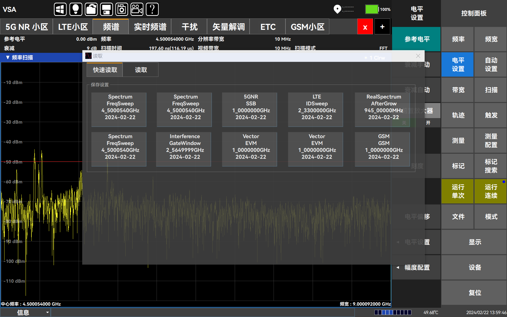 Ceyear 5252DG外場通信(xìn)測(cè)試儀能夠很好適配外場測量(liàng)環境,為外場測(cè)量提供便攜性操作。外場(chǎng)通信測試儀支(zhī)持幹擾排查(chá),針對TDD通(tōng)信係統提供對應帶寬下的頻譜分析,有效剝離上下行信(xìn)號,內置運營商模板方便(biàn)快捷(jié)操(cāo)作;同時支持對ETC信號進行路(lù)測分析測量、場強(qiáng)測試(shì)、多種調製信(xìn)號分析、音頻解(jiě)調分析(xī);外場通信測試儀輕便體積小,重量輕(≤2.4kg),便於機動(dòng)、具備多(duō)種便捷攜帶方式,同時支持遠程協作處理,具備“白天模式”、“黑暗模式”等多種操作模式,便於外場觀測(cè);此外,外場(chǎng)通信測試儀支持(chí)截屏、錄屏、配置模(mó)板的保存與調用及IQ數據保存。外場通信測試儀充分考慮實際外場環境,為外場測(cè)量提供便攜性操作。